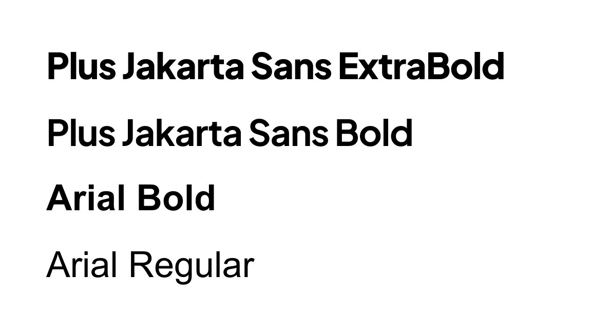 The Rivet brand uses two typefaces working in concert: Plus Jakarta Sans and Arial, chosen for their clarity, confidence, and versatility. Plus Jakarta Sans ExtraBold commands attention in headlines and the wordmark, carrying the brand's sharp, ambitious personality. The SemiBold weight brings the same precision to subheadings without competing for dominance.